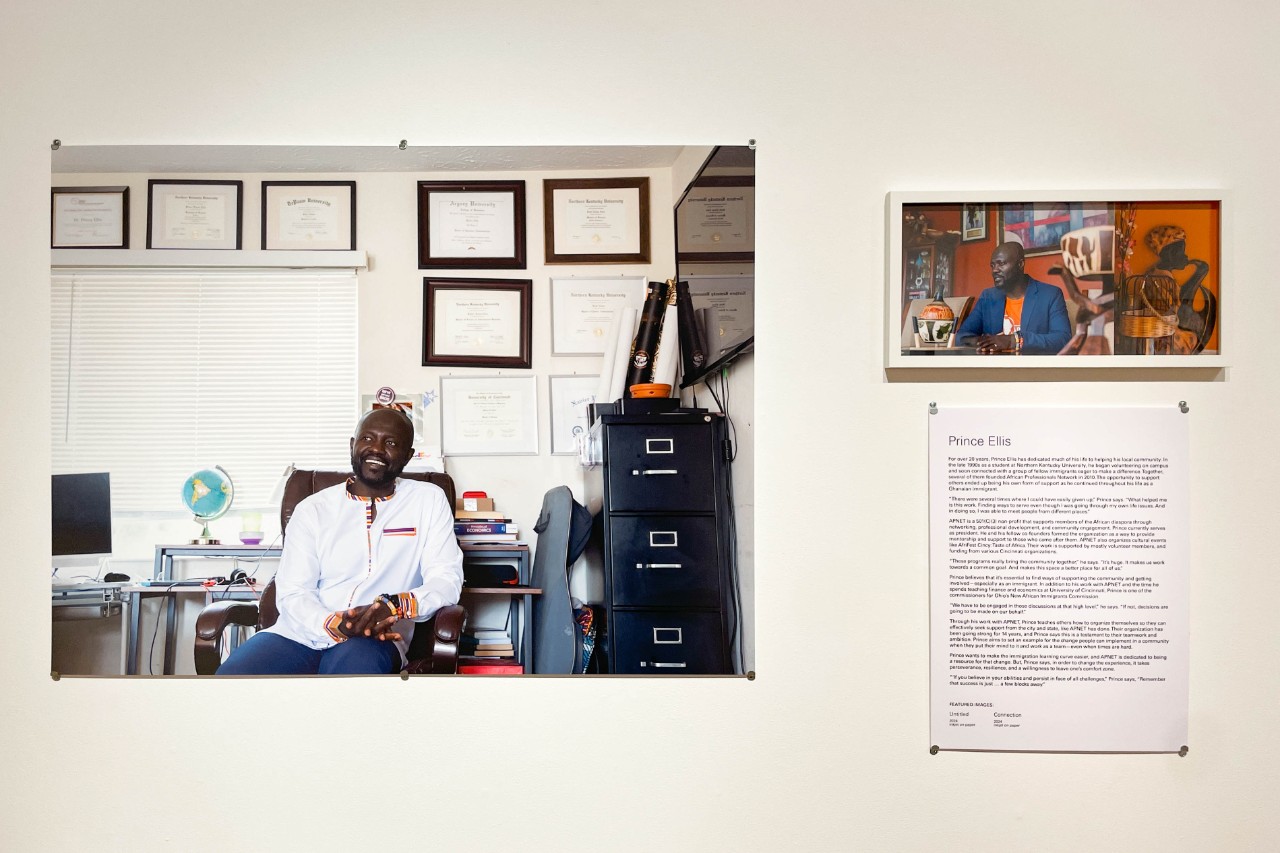 Immigrants and refugees make vast contributions and broad impact across the greater Cincinnati region. This exhibition showcases the unique stories of community leaders who are drivers of innovation, growth, and creativity. Specifically, this work is a platform for immigrant and refugee communities to explore how their own complex histories have driven them to lead. Individuals provide counter-narratives to harmful myths of the model minority and forever foreigner, balancing the intimacy of one’s migratory story as a core driver of action, but refusing to be limited by that story.