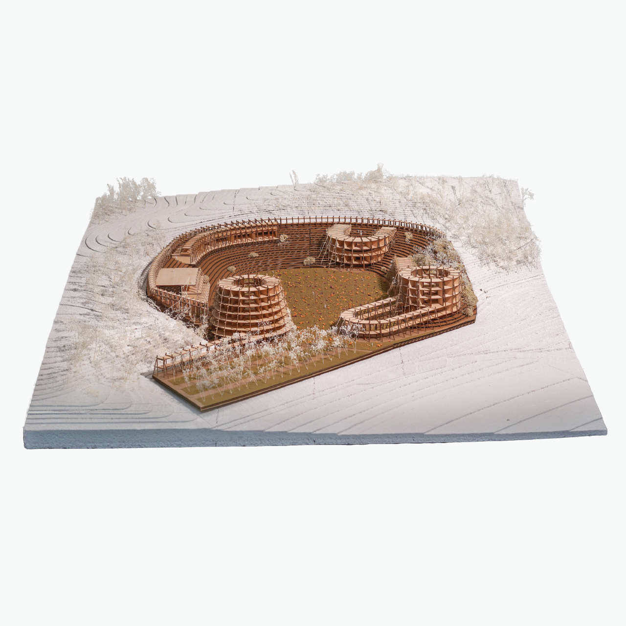 The studio aims to develop the conditions to establish a self-sufficient community for 500 people who will settle in the old stadium. The goal is to challenge the future of communal living spaces by rethinking standards and creating awareness of how we produce and consume, promoting slow, soft, and ecological urban settlements to allow architectural discipline to broaden its horizon and take on alternative themes and approaches.